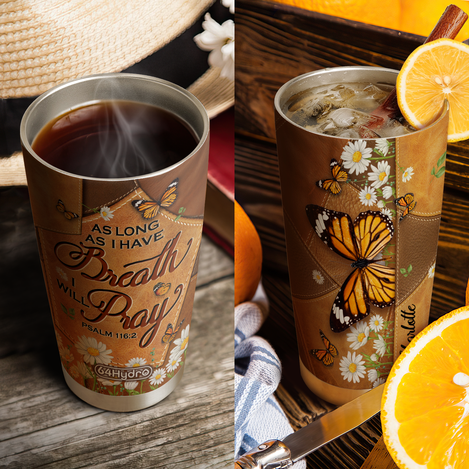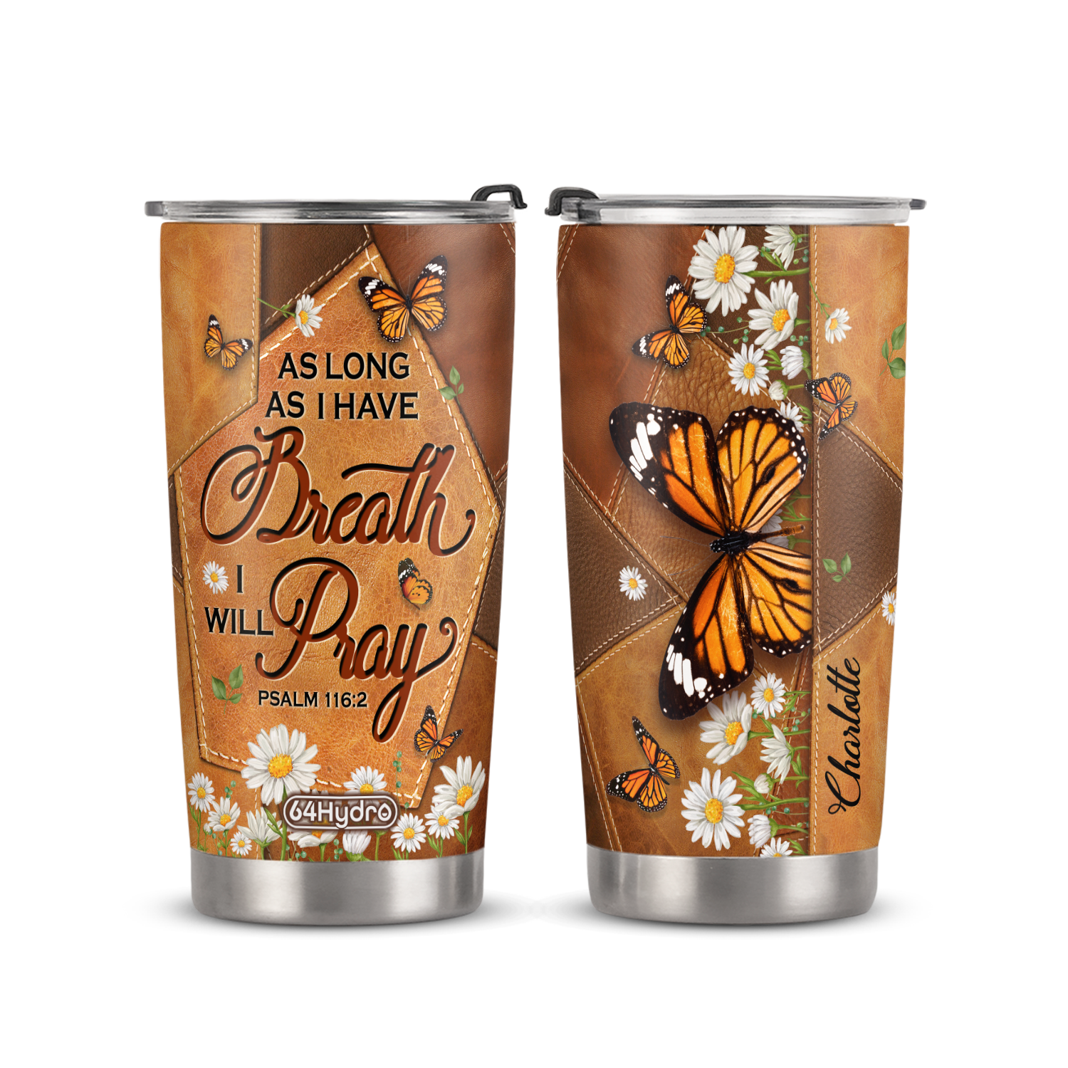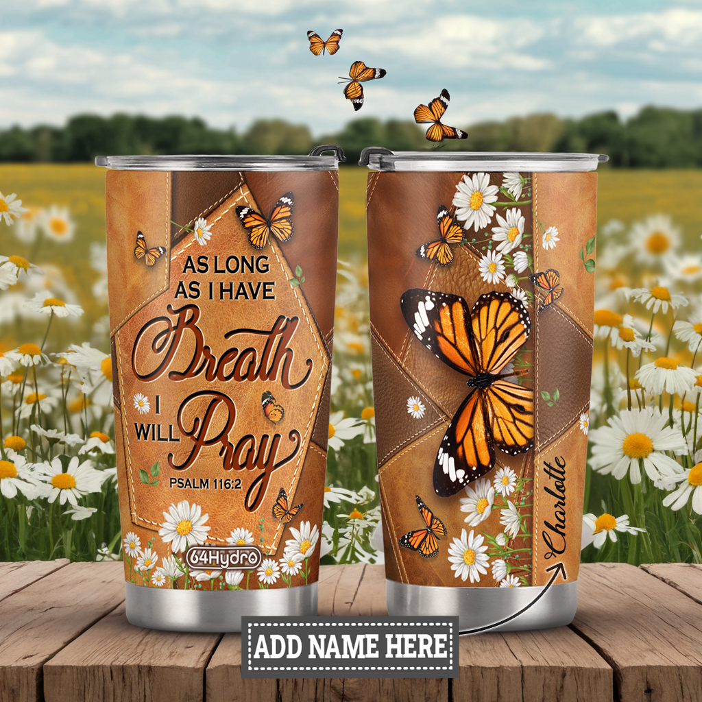Product Name: As Long As I Have Breath I Will Pray Psalm 116 2 Butterfly Daisy ANRZ04118427RK Stainless Steel Tumbler
