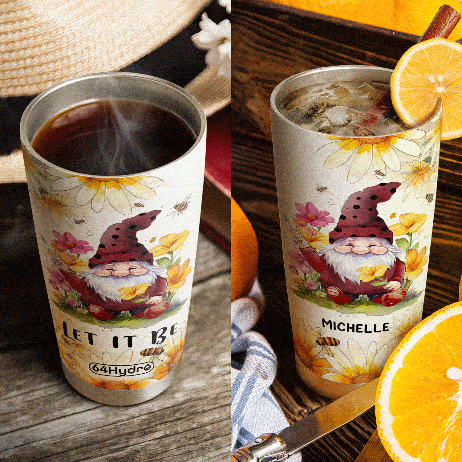 Product Name: Gnome Daisy Let It Be HHLZ270623142 Stainless Steel Tumbler