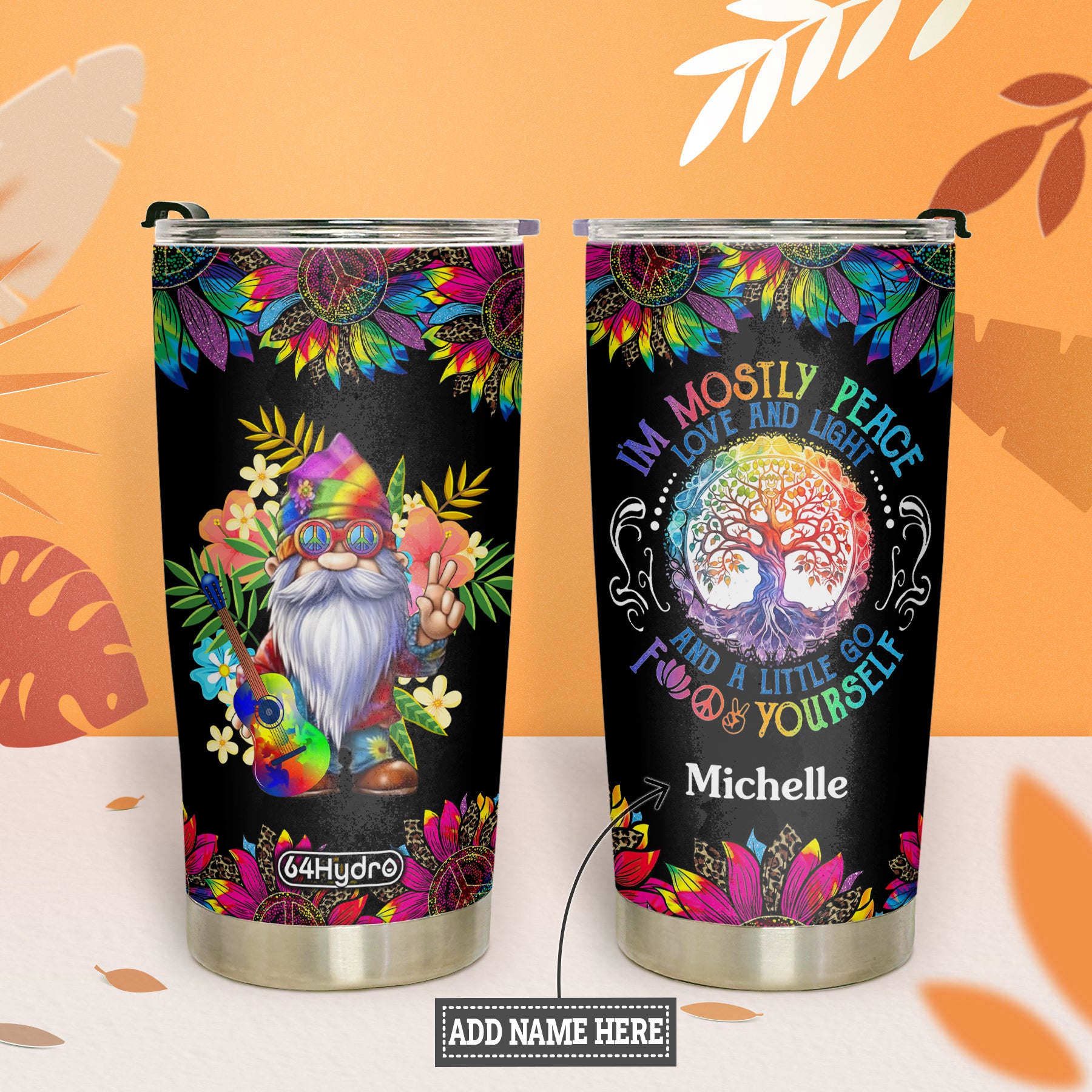 Product Name: Tie Dye Gnome Mostly Peace Love And Light HHLZ270623011 Stainless Steel Tumbler
