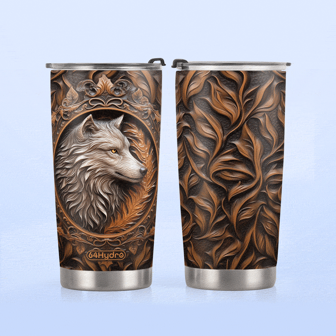 Product Name: Wolf Leather Carving HHAY070723484 Stainless Steel Tumbler